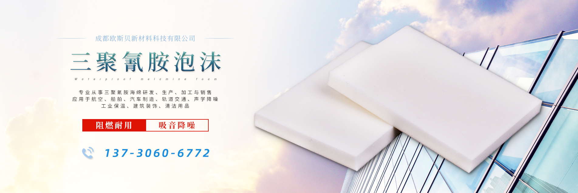 成都歐斯貝新材料科技有限公司是一家專業從事三聚氰胺海綿研發、生產、加工與銷售的高科技公司。專業的人才結構及多年積累的技術沉淀保證了公司在國內的科研生產及質量管控能力。開發的產品已廣泛應用于航空、船舶、汽車制造、軌道交通、聲學降噪、工業保溫、建筑裝飾、清潔及日用品等多個領域,受到了國內外客戶的一致好評!成都歐斯貝新材料科技有限公司以專業的研發能力,過硬的產品質量,真誠完善的專業化售前售中售后服務致力于打造國內三聚氰胺海綿行業的明星企業,與客戶一起再創新的輝煌!